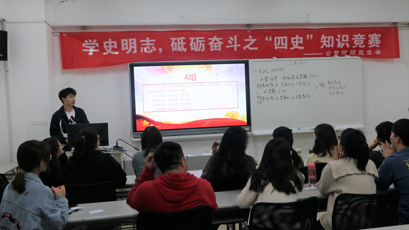 知史以明鉴,查古以知今。一部党史、新中国史、改革开放史、社会主义发展史,是我们党为中国人民谋幸福、为中华民族谋复兴的奋斗史,是我们党带领中国人民从站起来、富起来到强起来的创业史,是我们党不断以勇于自我革命的精神打造和锤炼自己的发展史。为热烈庆祝中国共产党成立100周年,积极响应学校号召推进“四史”学习教育,激发广大学生的爱国主义情怀,437必赢会员中心研究生会于2021年4月16日19:00在逸夫楼7051举办“四史”知识竞赛。
