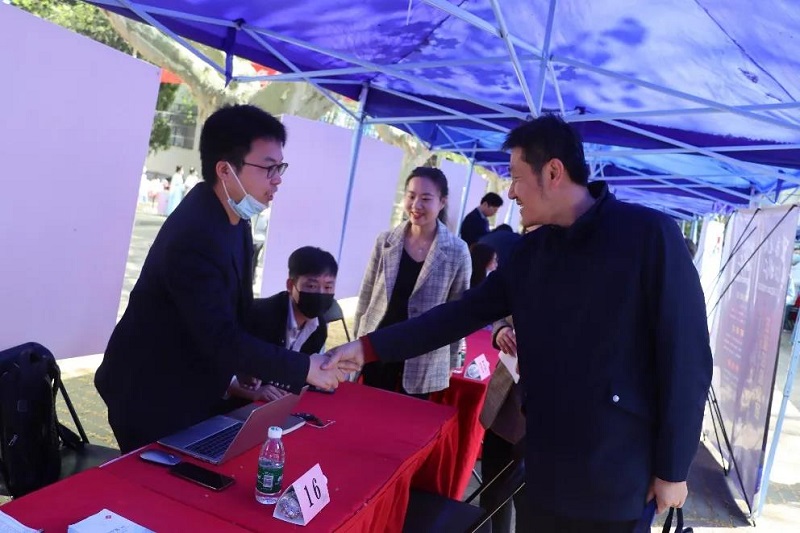 学院党委副书记张树峰与前来招聘的企业负责人亲切交谈,表达关心与慰问。同时协同院辅导员老师们对于众多初入职场显得迷茫和担忧的同学,在走访时及时与他们沟通,帮助他们找准方向、解决困难、克服紧张、顺利应聘。