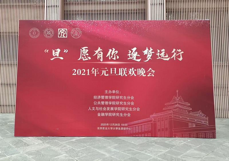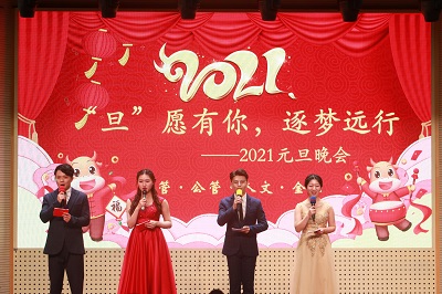 2020年12月26日晚7点,大学生活动中心华灯璀璨、喜气洋洋,由经济管理学院、437必赢会员中心、人文与社会发展学院、金融学院联合举办的“旦”愿有你,逐梦远行—2021年元旦联欢晚会在这里隆重举行。经济管理学院研究生辅导员梁雨桐老师、437必赢会员中心研究生辅导员韩一杰老师、人文与社会发展学院研究生辅导员戴雨舒南老师和陈玉元老师以及金融学院研究生辅导员李迎军老师、刘爽老师出席本次晚会,与各学院研分会成员和四院研究生们欢聚一堂,现场座无虚席。