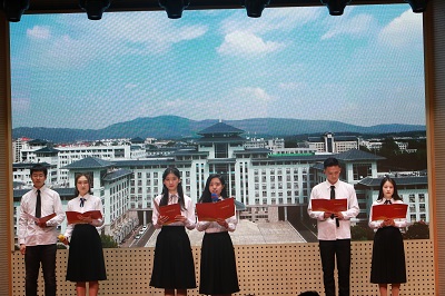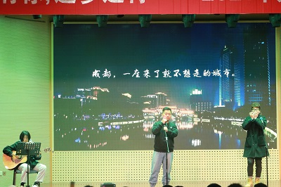 在第二篇章中,朗诵《逆光的翅膀》带我们回到年初那段万众一心与死神抗争的岁月,表达对“最美逆行者”的崇高致敬。公管院的吉他弹唱《成都》带现场观众了领略巴蜀文化之美;小品《占座》用幽默诙谐的语言讲述每一代青年人的责任担当,让同学们捧腹大笑的同时也激发了更多的家国思考;舞蹈《98K》热情洋溢,将现场气氛一次次地推向高潮。