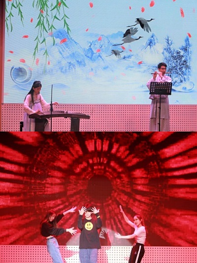本次元旦晚会以“‘旦’愿有你,逐梦远行”为主题,分为“相守今岁”、“相望来路”和“相伴远航”三个篇章,涵盖了各类型节目,可谓精彩纷呈。开场舞《Lovesick Girls》迅速点燃了现场的活跃氛围。随后,四位主持人走上舞台,向到场的各位老师和同学表示热烈的欢迎。