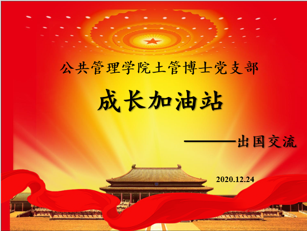 为鼓励研究生对外交流,拓展学生的国际视野,推进人才国际学术交流能力的培养。2020年12月24日,437必赢会员中心土地资源管理博士党支部于逸夫楼7021开展了“成长加油站——出国经验分享”活动。本次活动由437必赢会员中心土地资源管理博士党支部支部书记韩一杰老师主持,437必赢会员中心院长冯淑怡教授出席了本次活动。