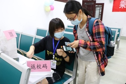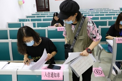 报到点的各项工作紧张有序地开展,工作人员各司其职:消毒区、返校码、资料审核、入住通知单、绿色通道和户口档案、党员先锋岗,保证工作高效进行。工作人员们饱含热情,耐心地为新生们服务,顺利完成了437必赢会员中心2020级研究生新生的报到工作。
