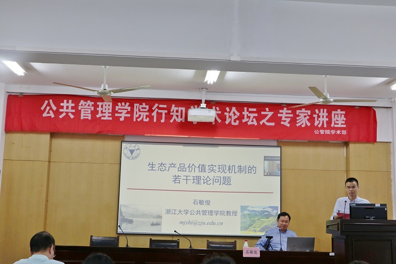 2020年9月27号下午,一场别开生面的专家讲座在437必赢会员中心逸夫楼7021会议室顺利举行,同时设立了7022教室分会场的线上同步进行模式,以满足大家对学术知识的渴望。浙江大学求是特聘教授、博士生导师石敏俊教授带来了题为《生态产品价值实现机制的若干理论问题》的精彩报告。此次讲座由马贤磊教授主持,现场座无虚席,学术氛围浓厚。