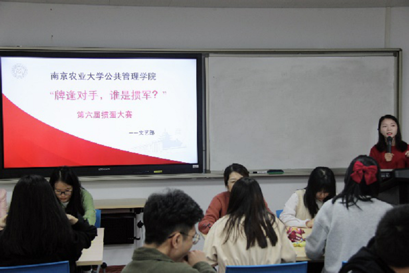 为丰富我院硕博研究生的业余文化生活,提高思维能力,使大家在紧张繁重的科研任务中得到放松,10月18日晚6:30,公管院研究生会在逸夫楼8020举办了以“牌逢对手,谁是掼军?”为主题的第六届研究生掼蛋大赛,本次活动由文艺部承办,得到宣传部、生活部等部门的协助。活动一经发布得到我院同学的积极响应,共有32名来自不同专业的同学们参赛,大家在比赛中切磋牌技、愉悦身心。