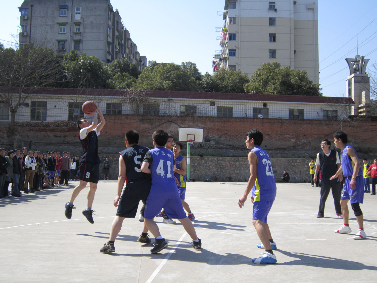 作为bwi437官网神农节系列活动中的重头戏,“神农杯”研究生男子篮球赛今日下午1:00在北苑篮球场拉开帷幕。我院与动医院之间的对决,被选定为本次“神农杯”篮球赛的首场好戏,为广大研究生同学呈现一场惊险刺激的表演。我院蔡老师非常关心这次比赛,亲自到场督战,为队员们呐喊助威,给了队员们很大的鼓舞。