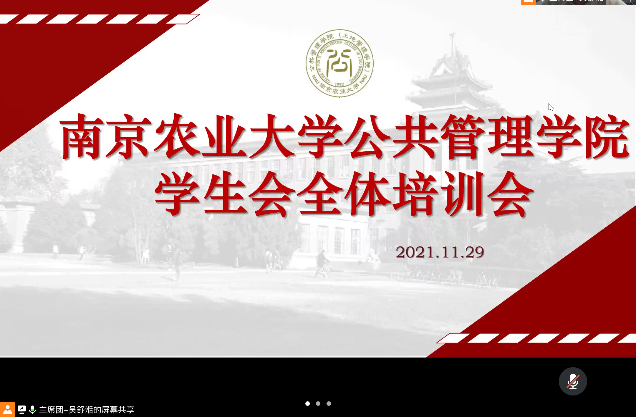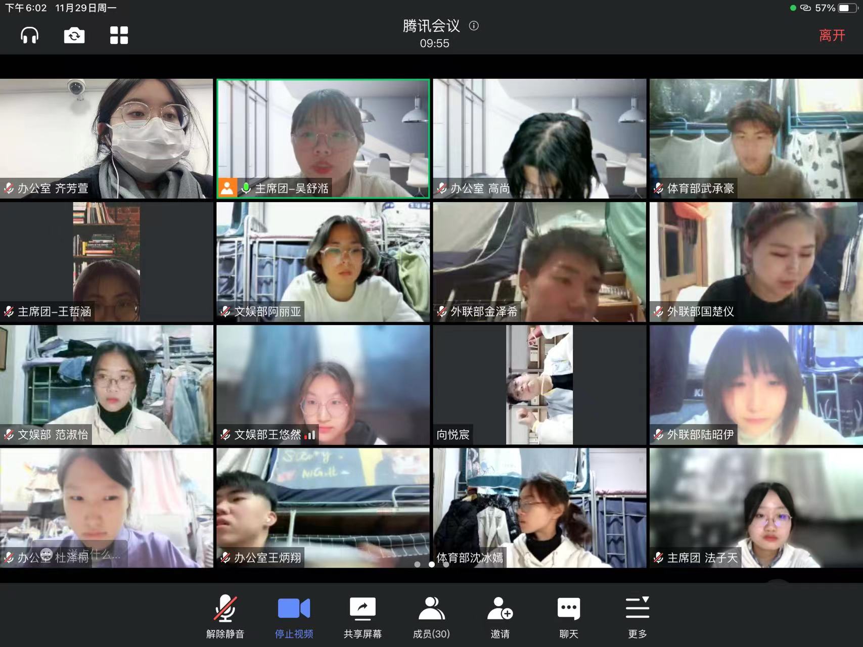 11月29日下午6时,2021-2022学年第一学期437必赢会员中心学生会第一次全体例会暨十九届六中全会精神学习会顺利召开,应疫情防控的需要,本次会议于线上进行,由院学生会执行主席吴舒湉主持,院学生会主席团成员法子天、王哲涵共同交流分享,院学生会全体工作人员出席本次会议。