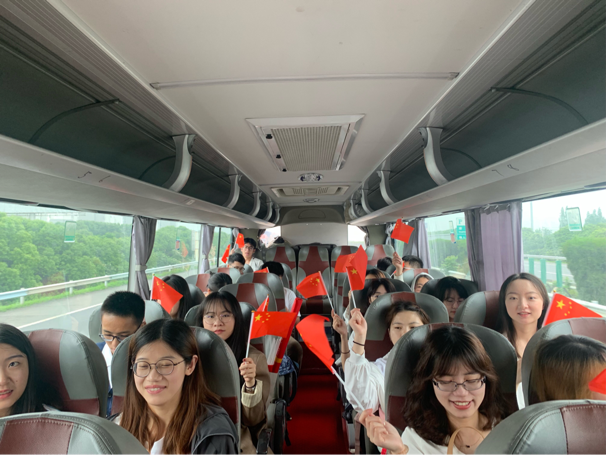 在前往沙家浜革命历史纪念馆路程中,为了增进各支部党员同志的了解,组织举办唱红歌活动。在“听歌识曲”环节,主持人杨润泽详细介绍了《在灿烂阳光下》、《红梅赞》、《我的中国心》等经典红歌的创作背景和蕴涵的爱党爱国之情。在合唱环节,施羽乐同志带领大家唱《没有共产党就没有新中国》、《闪闪的红星》、《我和我的祖国》,红歌铿锵有力,激励着我们积极向上,不断进取。