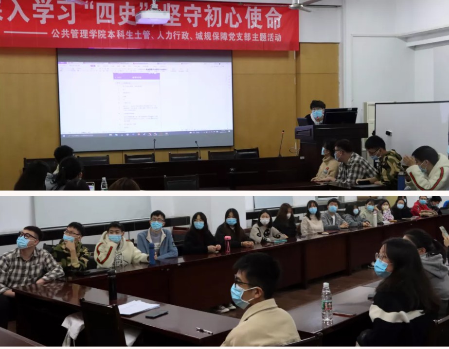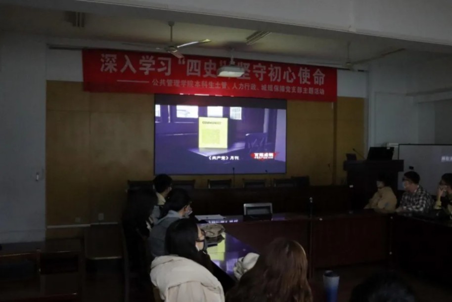 为对传承主题系列活动作出总结,同时进一步学习先进思想。2021年11月7日,三个党支部结合近期热点,采取集中视频学习的形式,在逸夫楼7021组织党员深入学习“四史”大课。