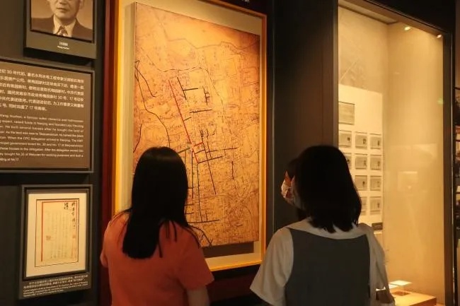 合影结束后,参与成员在梅园新村纪念馆内自行参观寻访。走进陈列馆内,处处可见着1946年到1947年那段时间里国共和平谈判的会议剪影。展厅里陈列着国共两党重庆谈判和南京谈判的文献史料照片、部分实物,以及当年中国共产党支持和发展爱国民主运动的照片和史料。一幅幅图片、一件件珍贵的文物,让我们眼前依稀可见周总理运筹帷幄,从容不迫的革命家风度和气质,也让我们深深感受到了周总理不忘初心、鞠躬尽瘁为革命事业奋斗终生的可敬身影。