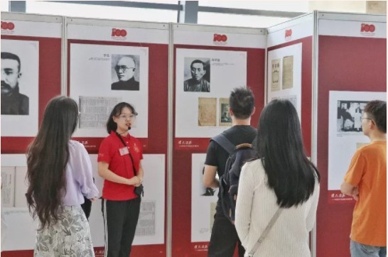 在“风云际会、相约建党” 板块,党员们借助志愿者的详细介绍,深入了解了这一时期马克思主义思想的宣传以及在其中涌现的如李大钊、陈独秀等重要的思想家群体,去窥探思想家们如何在这风云动荡的年代相遇,在发展先进的上海社会共谈创立共产党、从思想家蜕变成革命者的过程。