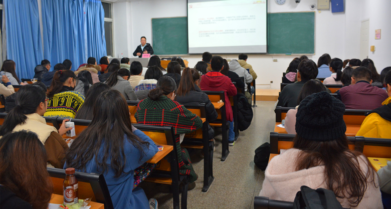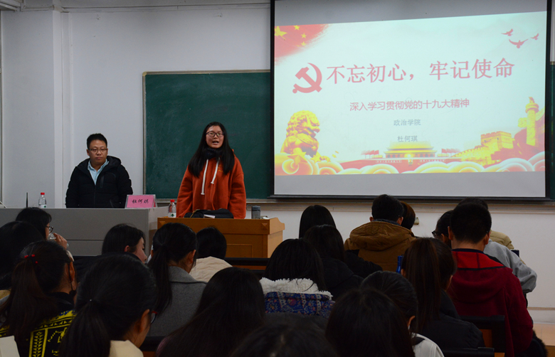 12月3日19:00,437必赢会员中心初级党建班和中级党建班联合策划开展的以“新时代、新篇章——党的十九大精神解读”为主题的专题讲座在教学楼A204举办。本次讲座由政治学院杜何琪主讲,分党校初级党建班学员以及中级党建班学员参与。