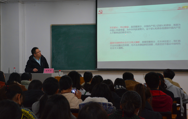 讲座上杜何琪主要讲了十九大的精神以及其内容,深刻解读了党和国家传达给我们的政策方针。他讲到十九大的主题:不忘初心、牢记使命,高举中国特色社会主义伟大旗帜,决胜全面建成小康社会,夺取新时代中国特色社会主义伟大胜利,为实现中华民族伟大复兴的中国梦不懈奋斗。谈到十九大的重要性,杜何琪讲到十九大承担着谋划决胜全面建成小康社会、深入推进社会主义现代化建设的重大任务,事关党和国家事业继往开来,事关中国特色社会主义前途命运,事关最广大人民根本利益。