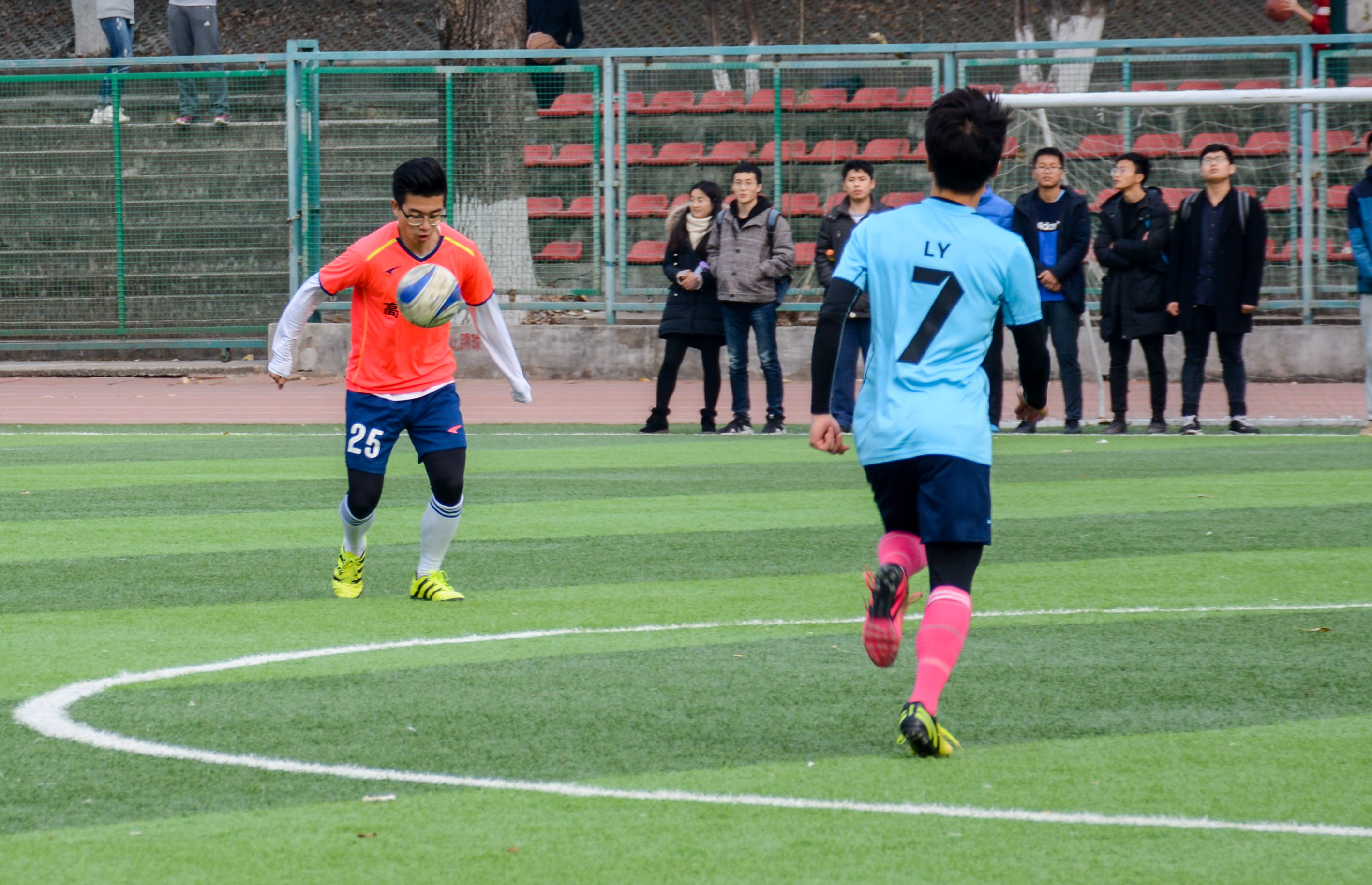 全场比赛双方球员寸土必争、不惧对抗,共同奉献了一场精彩的赛事。比赛一开场,双方球员便迅速的进入状态,各方攻守得当、配合默契,战事渐入焦灼,九十分钟比分仍为0:0,比赛进入点球大战。公管院杰森率先罚进一球,对方球员也不甘落后,追回一球,比分1:1平。随后对方球员再进一球,我方队员麦无浪迅速还击,在晃过对方门将后顺利进球,扳平比分。战事渐趋紧凑,双方球员皆全力以赴,四轮比赛过后,比分暂为2:3。最后一轮比赛,我方球员吴佳栋顶住压力,成功进球,但仍然无法扭转战机,以3:4的比分遗憾落败。