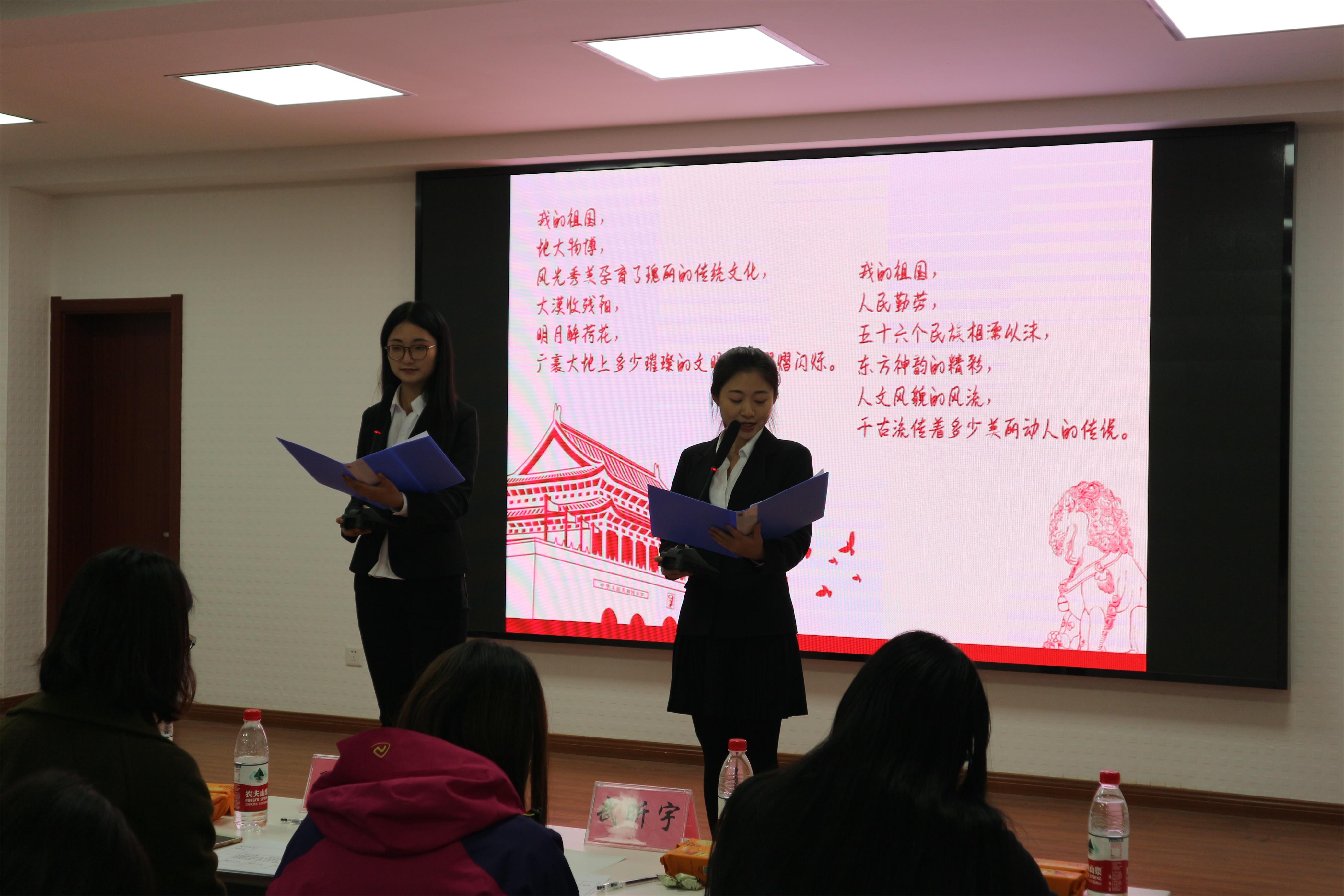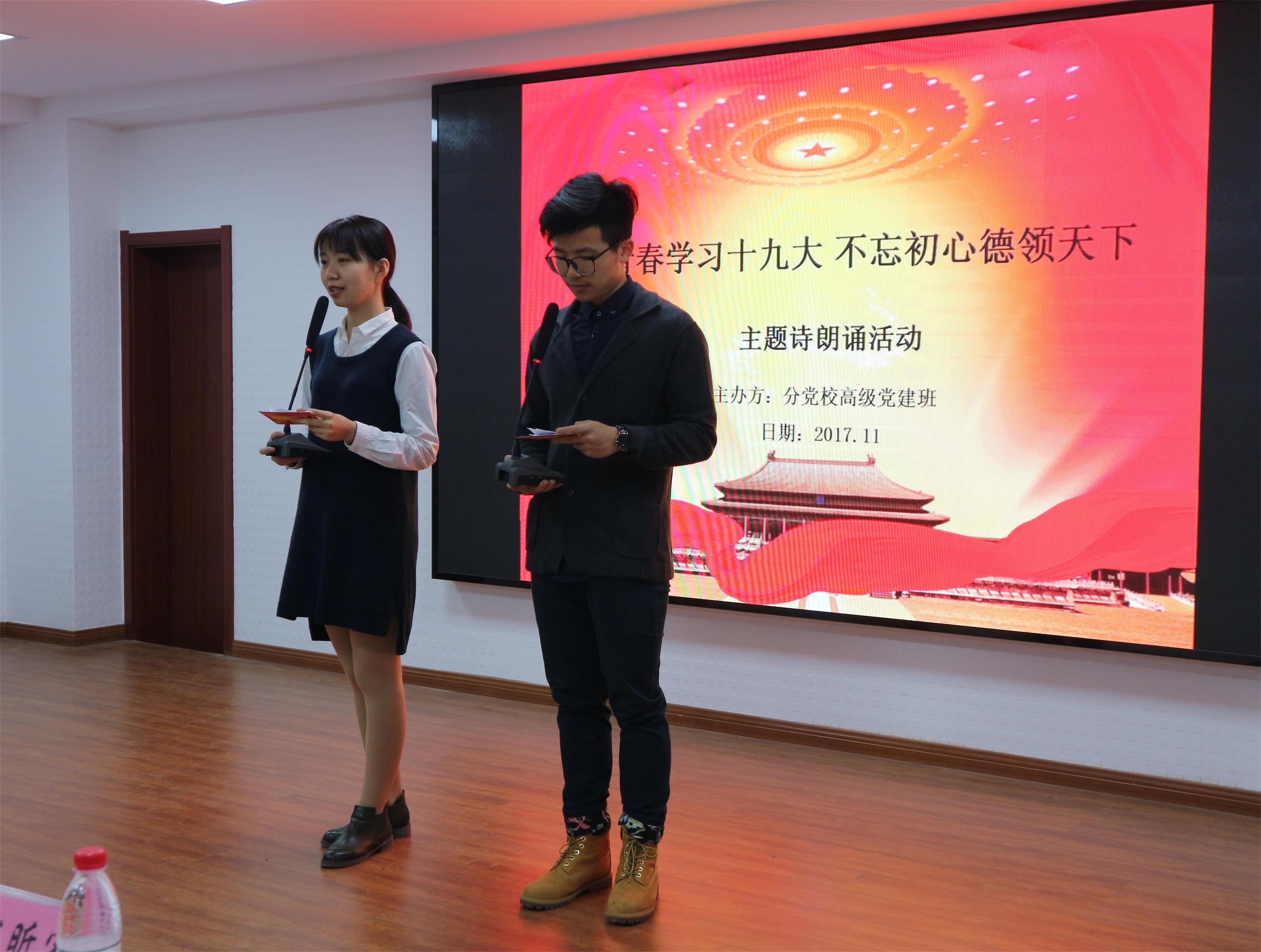 为积极响应校党委深化巩固“两学一做”学习教育常态化、制度化,我院分党校高级党建班组织了“正青春学习党的十九大·不忘初心德领天下”系列活动,于本次迎来了收官之战。本次比赛分为两个环节,第一部分诗朗诵,占总比分的70%;第二部分知识竞赛,占总比分的30% 。