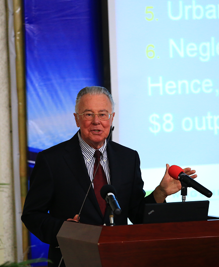 上午9点15分,开幕式进入下半场,由荷兰瓦赫宁根大学发展经济学系荣誉退休教授Arie Kuyvenhoven和我校的冯淑怡教授分别作主题报告。