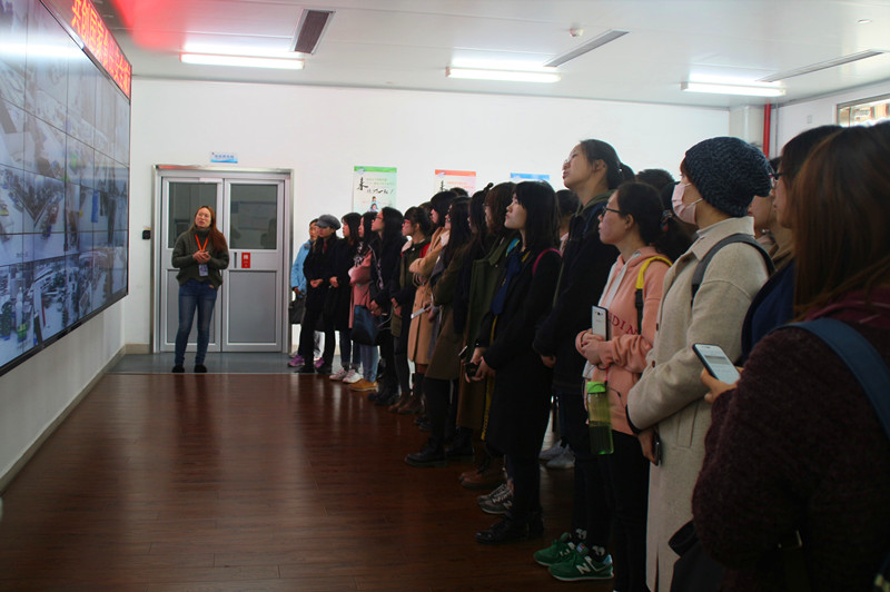 我们先参观了中央厨房生鲜厂,了解生产基本概况与具体流程,仔细观看了果蔬类与肉类产品加工生产区,并观察流水线工人的操作过程。紧接着参观了中央厨房熟食厂,了解整个熟食制作业务的组织架构,人员配备并通过大屏幕实时监控观察工人的生产情况。同学们也向讲解员提出各种生产加工、人员安全与食品卫生管控等问题,对未来城市家庭膳食服务市场的发展动态有了初步认识。