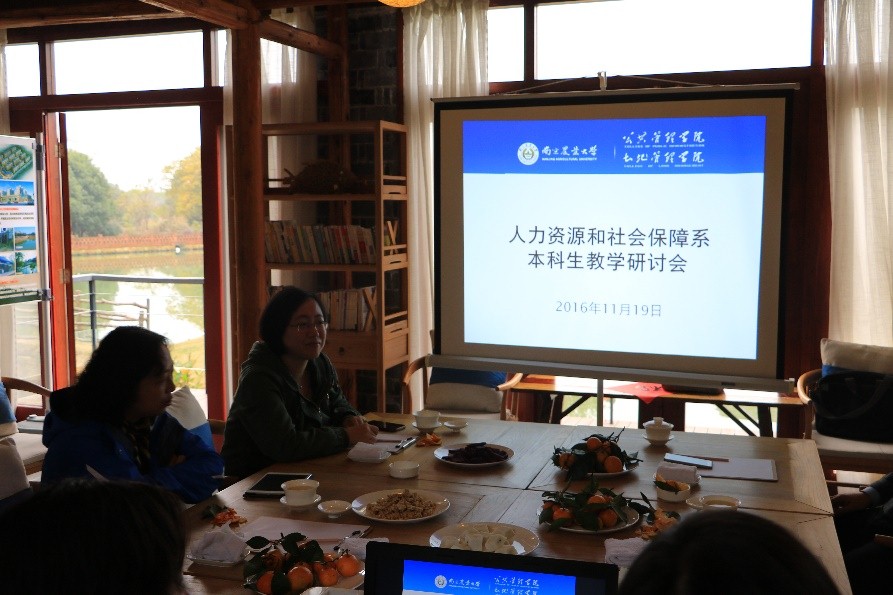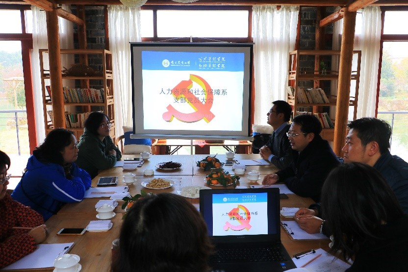 2016年11月19日,人力资源和社会保障系党支部全体党员在溧水区晶桥镇召开支部党员大会学院党委书记郭忠兴、副书记张树峰、副院长谢勇等参加会议,会议由党支部书记、系主任周蕾主持。