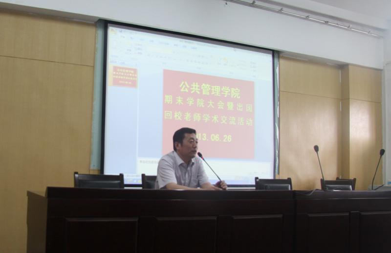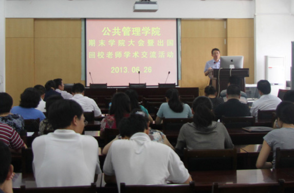 6月26日下午,我院在逸夫楼7021报告厅召开期末学院大会暨出国回校老师学术交流活动,学院全体教职工参加,会议由院长欧名豪主持。