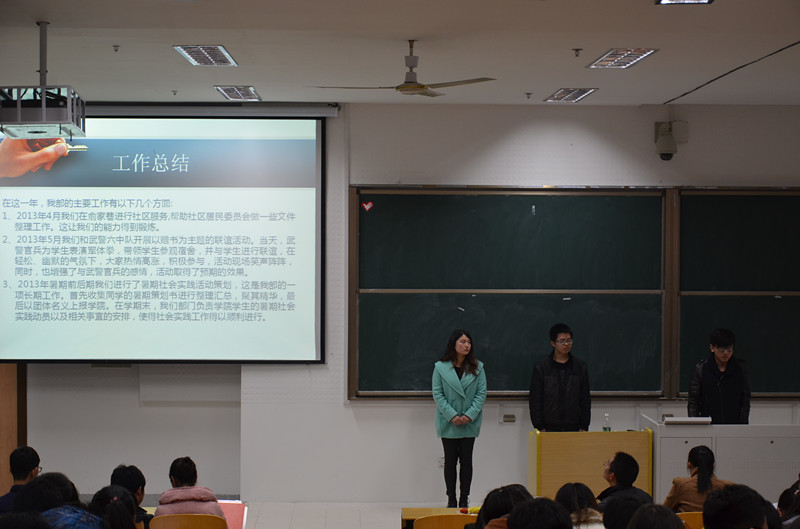 短暂的休息结束后,学生组织汇报开场。首先进行汇报的是学通社,作为学生发声的咽喉,社长带领各部部长进行了总结汇报,明确指出新闻质量不高和时效性低的问题,并表示下一阶段将加强新闻的培训,由此达到提高、发展、创新的最终效果。紧跟其后的是分党校、团委、科协等组织部门,与班级建设不同的是学生组织的建设更加多元,将触角延伸至外院、外校甚至校园外的组织。最后,学生会作为压轴出场,简洁的介绍了其下各组织开展的活动,并寄托了大公管会越来越强的美好愿望。