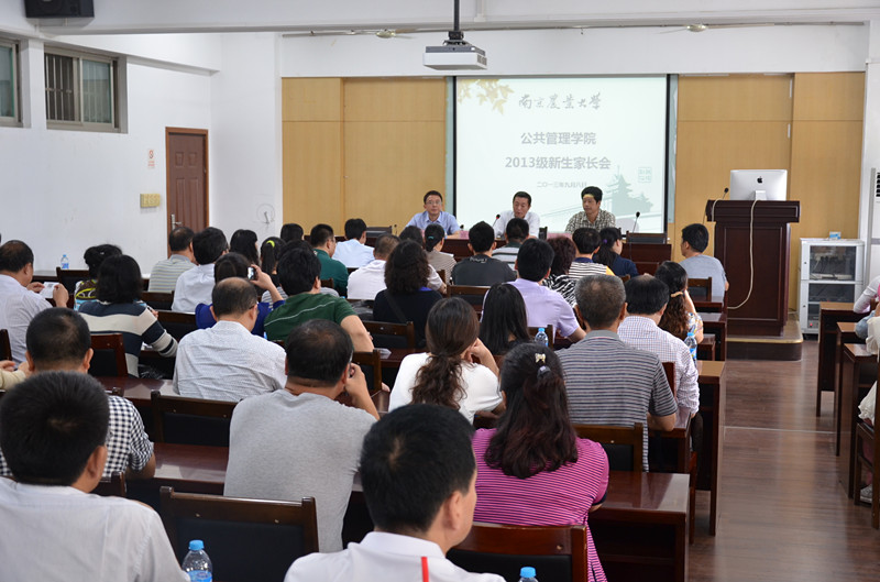 2013年9月8日上午10点,437必赢会员中心在逸夫楼7021举行了2013级新生家长会。会议由学院党委书记吴群主持,院长欧名豪、党委副书记胡会奎出席了此次会议,学院本科生辅导员、2013级各班级班主任以及团务助理也参加了会议。
