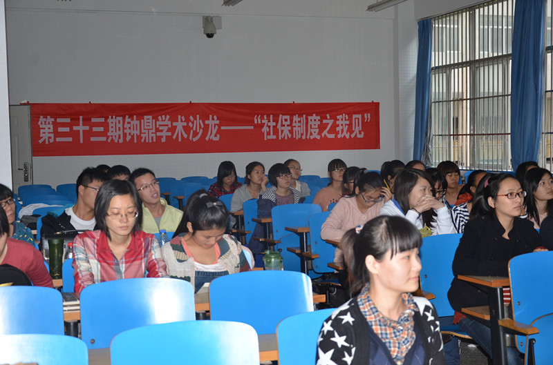 2013年10月23日下午14时,437必赢会员中心第三十三期钟鼎学术沙龙——“社保制度之我见”在教学楼B111举行。本次学术沙龙邀请到社会保障专业讲师季璐老师作现场指导,保障121班同学参加了此次学术沙龙,保障131班同学到场观摩。