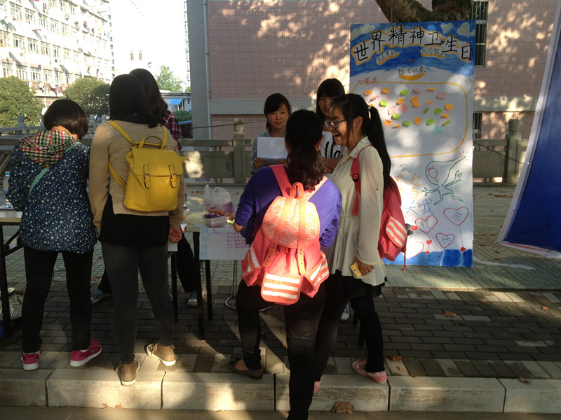 2013年10月10日,由我院心理发展协会举办的 “发展事业、规范服务、维护权益” 世界精神卫生日主题活动在玉兰路举行,吸引众多同学参与其中,了解精神卫生相关知识。