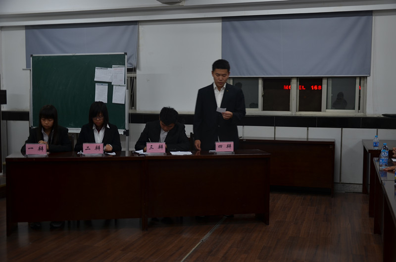 2013年10月26日19时,公管院2013级新生杯辩论赛决赛在逸夫楼7021举行。兼职辅导员窦靓、虞炎泠、谢婷和各院辩论队历届资深辩手担任此次决赛的评委。现场引来众多同学前来观看。