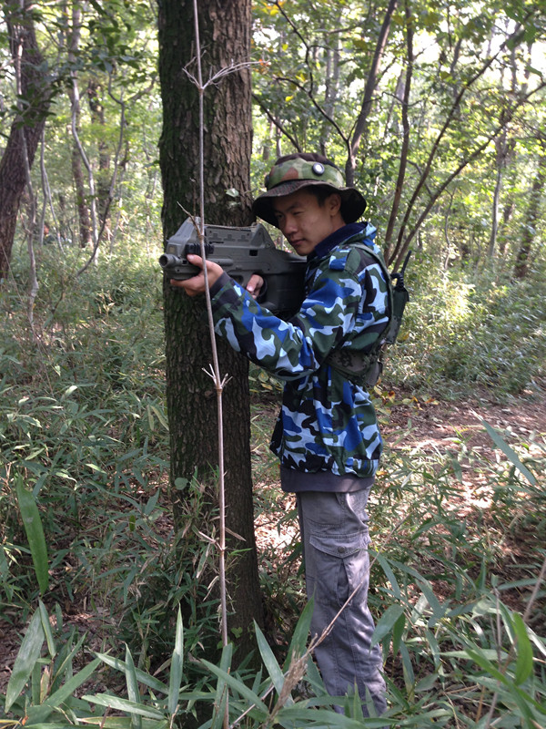 首先,同学们通过逐一报数分为两队,两队各自推选出队长。两队队员分别身着配备电子设备的陆军迷彩服与海军迷彩服,手持狙击枪,头戴迷彩帽。第一轮为攻防战,由两位队长猜拳决出攻、守方。在第二队队长的带领下,队员们进入守方阵地,找到隐蔽处,各自就位。第一队随即出动,穿梭于森林之中。在共同作战的过程中,同学们互相鼓励,于既定战略之下灵活应对突发情况,气氛紧张而和谐。近半小时后,战斗结束,第二队以阵亡人数少于第一队一人的成绩胜出。而第一队队长也以杀敌17人,死亡0次的优异成绩迎来了全场的掌声。第二轮两队交换位置作战,第一队集中精神,谨慎作战,最终以遥遥领先的成绩取得胜利,扳回一局。同学们也都体验到了攻克难关的喜悦与激情。