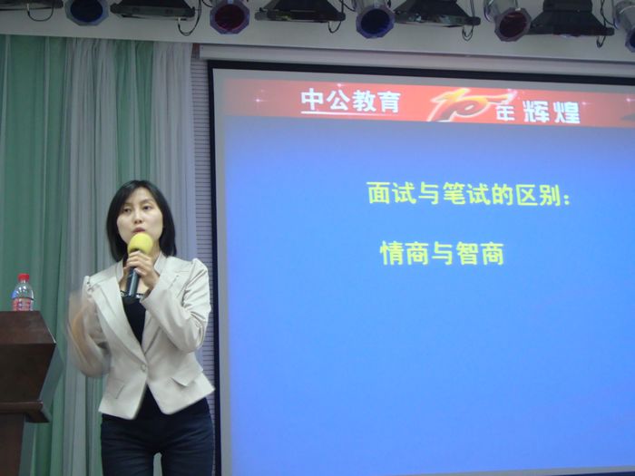 此次讲座主要针对公务员面试技巧,由中公教育资深讲师谢茜老师为同学们进行详细的现场讲解与剖析。谢老师先就公务员面试与笔试的区别,面试的概念与相关模式进行讲述。紧接着,就两种基本面试形式展开深入探究,让在场的每个同学都详细的了解了结构化面试与无领导小组讨论面试的基本步骤。随后,老师就“综合能力”“题型把握”“心理素质”这三个方面对公务员考试面试内容进行讲解,并对三者所占权重进行比较,列举了部分历年典型真题与大家分享,使同学在题型认识上大开眼界,并与同学互动,鼓励同学们勇于展现自我表达不同见解。