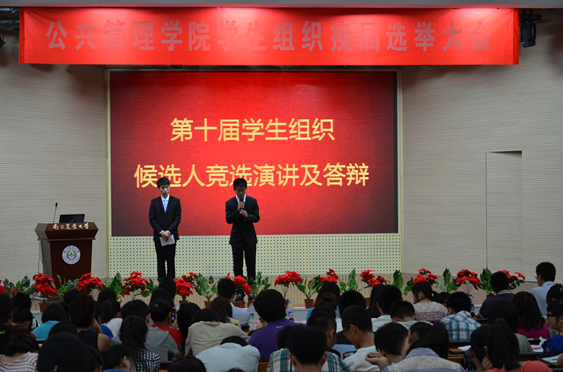 本次换届选举大会严格遵守程序,共分为五个流程,即第九届学生组织负责人述职、为第九届学生组织成员颁发聘书、第十届学生组织候选人竞选演讲、现场答辩和公开投票。