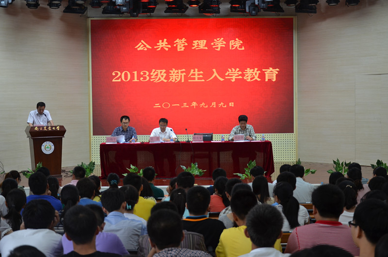 2013年9月9 日下午14时30分,我院在大学生活动中心隆重举行2013级新生入学教育。院长欧名豪、院党委书记吴群、副院长石晓平、党委副书记胡会奎以及学院有关负责人、班主任等出席了新生入学典礼。我院全体2013级本科生、研究生,部分教师代表参加了新生入学教育。