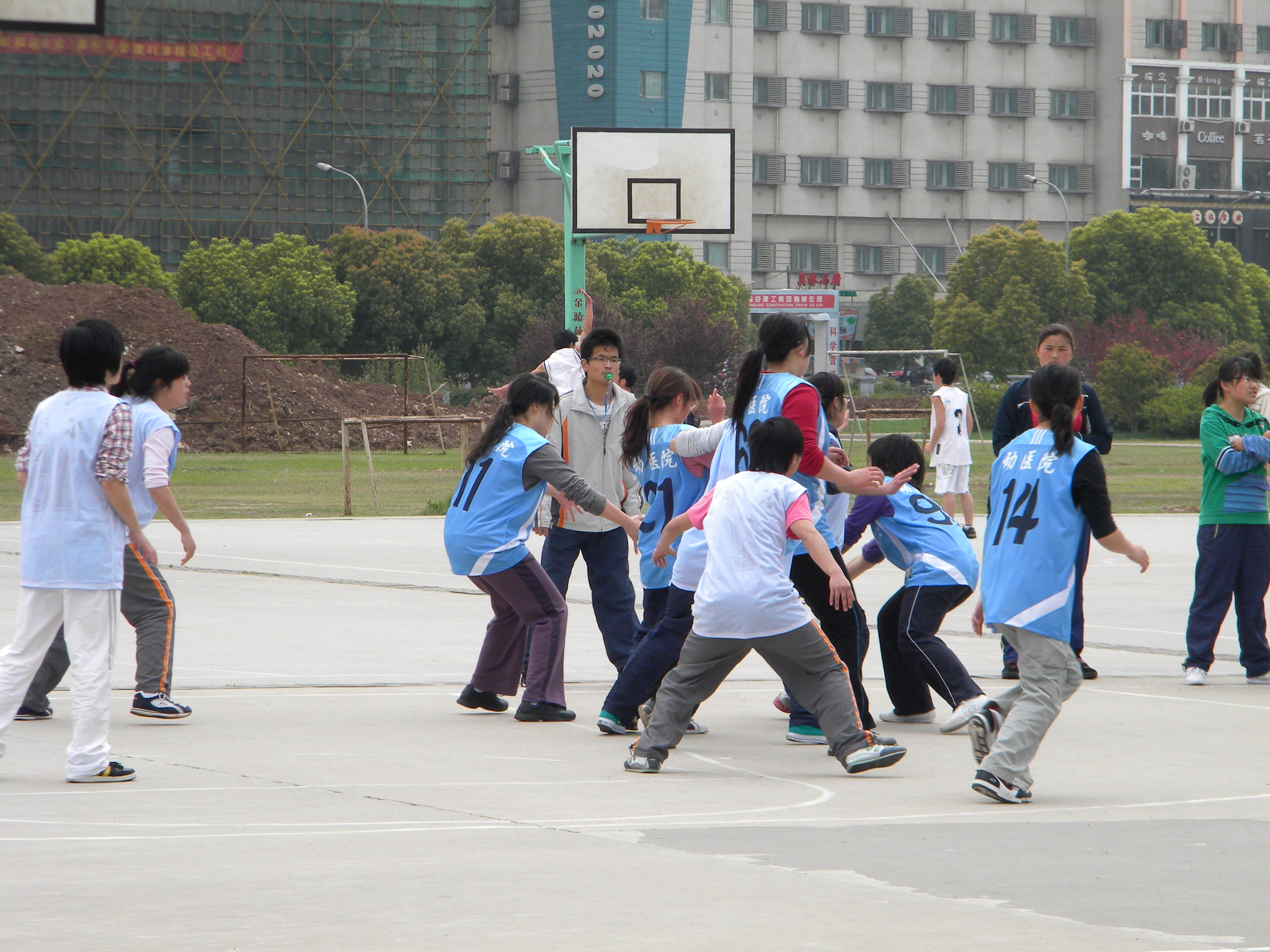 4月13日中午,比赛继续进行。开始时,双方陷入胶着状态,之后动医又展开了进攻,得到两分。公管院一名队员却意外扭伤脚,只好换人。