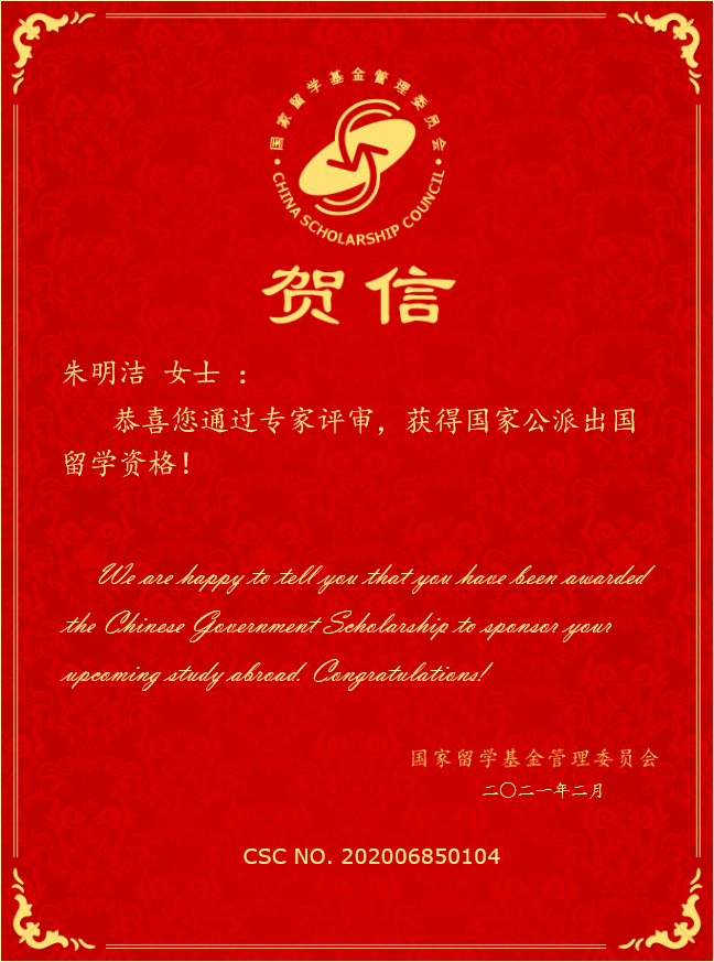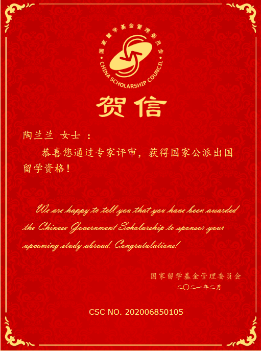 近日,国家留学基金委员会发布通知,437必赢会员中心行政管理硕士生陶兰兰、教育经济与管理硕士生朱明洁,顺利通过评审,获得资助。这是我院在国家留学基金委“乡村振兴人才培养专项”支持下选派的首批研究生。