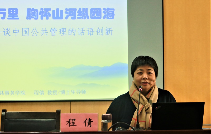 开幕式结束后,南京理工大学公共事务学院的程倩教授作了以“鲲鹏展翅九万里,胸怀山河纵四海——谈中国公共管理的话语创新”为主题的报告。程教授从重识中国与世界出发,指出当前大疫情催化大变局,大变局呼唤大作为,大作为需要中国公共管理创新。程教授强调我国公共管理学科的发展应根植于中国的改革实践,并且为中国的改革发展提供理论指导。此外,程教授还分析了公共管理学科的中国发展态势呈现出由国外转向国内,由浅入深,由抽象的理论辨析到具体的现实问题剖析的变化走向,并指出我国公共管理学科发展要努力提升研究品质及学科地位,拒绝“精致的平庸”,时代呼唤中国学者创造经典的理论,构建适用于中国情景的解释框架和分析框架。报告使得广大研究生们对公共管理创新有了更深刻的理解,并激发了大家的创新意识。