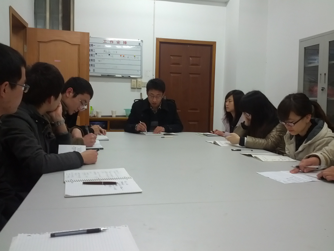 2013年2月28日晚上7点,我院研会在逸夫楼7015召开2月份例会,会议由研会主席张志宏主持,辅导员杨海峰老师出席。作为本学期第一次例会,会议在总结上学期的工作的同时,重点对本学期各部门工作做了计划和部署。