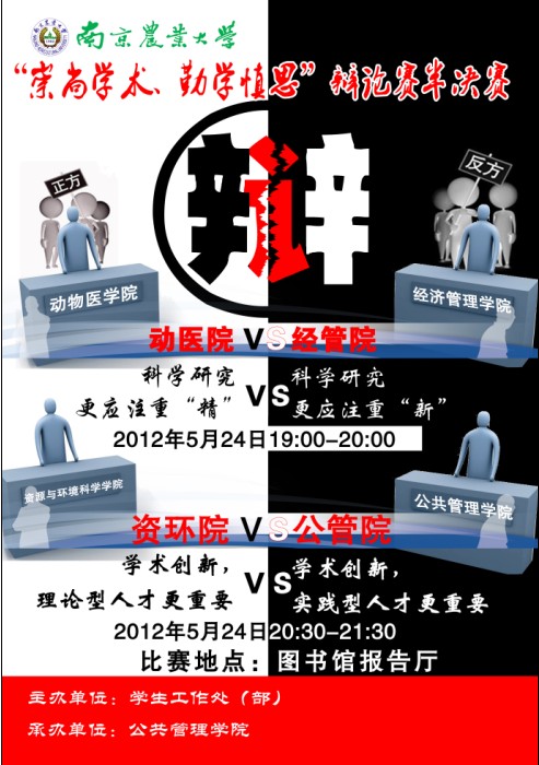 内容:“崇尚学术、勤学慎思”主题辩论赛半决赛