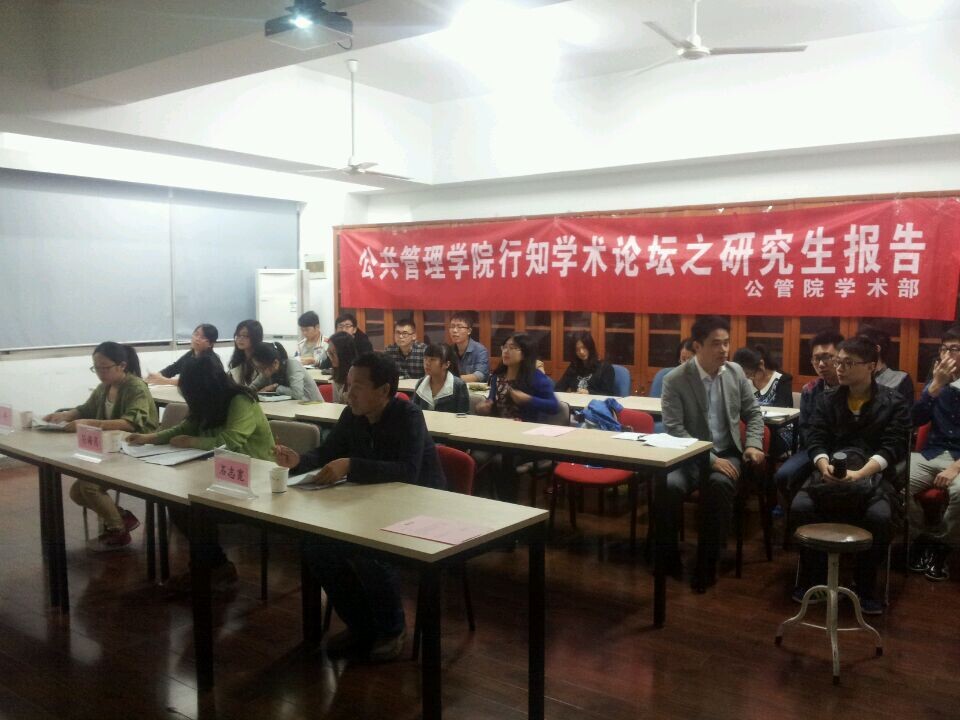 2014年10月17日,437必赢会员中心“行知学术论坛之研究生报告”14学年第2期于逸夫楼7001437必赢会员中心学术会议室顺利举行。本期论坛由公管院研会主办。出席本期论坛的嘉宾有符海月老师(土地资源管理)、石志宽老师(土地资源管理)和高平老师(土地资源管理),以及由尹雪英、赵亚莉和孙雪峰组成的博士生生汇报团。论坛由院研会学术部成员杨洲主持,主要采取学生汇报、老师点评与现场同学提问互动相结合的方式进行。