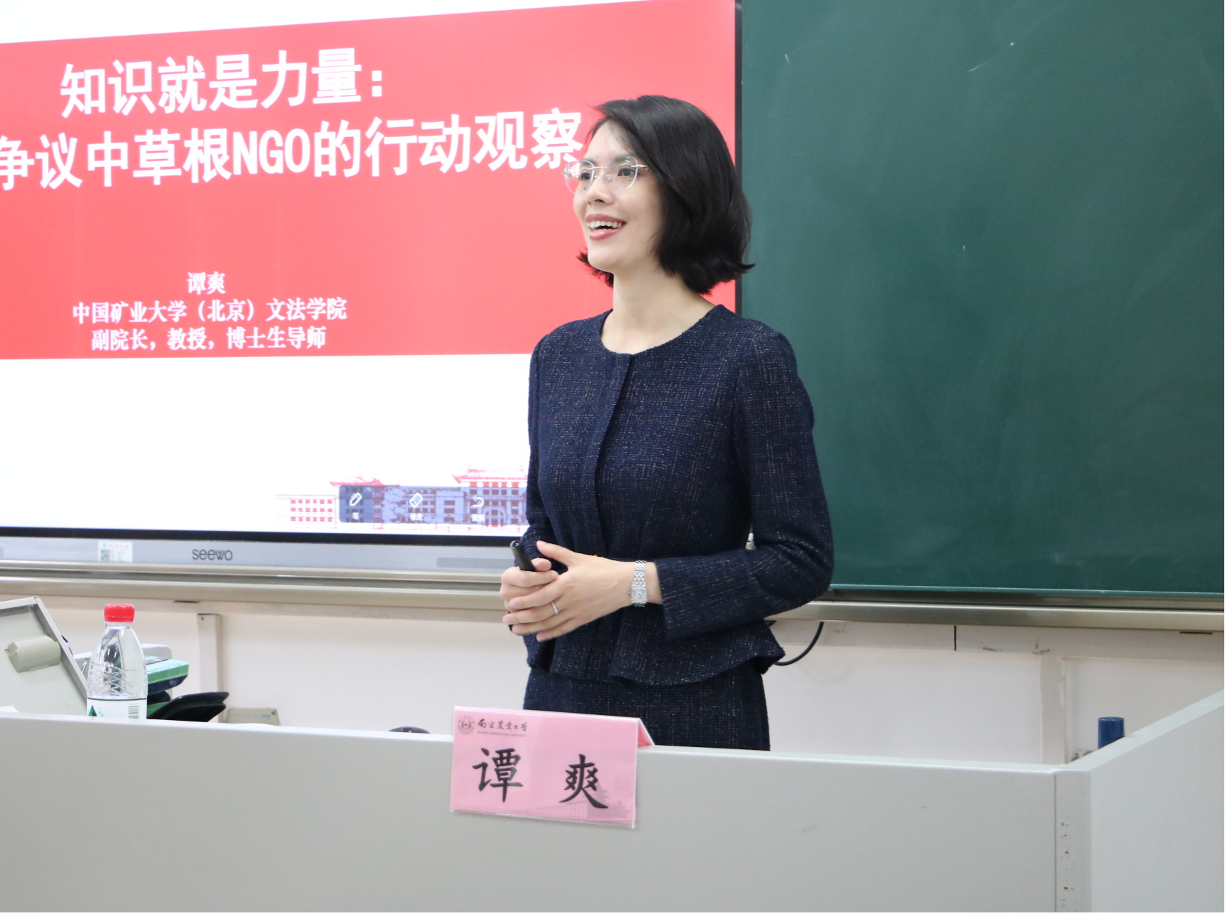 为拓展师生研究视野,9月27日上午9:50在教学楼B110,中国矿业大学(北京)文法学院副院长教授、博士生导师谭爽应邀主讲,为我院师生做主题为《知识就是力量:风险争议中草根NGO的行动观察》的报告,本次讲座由437必赢会员中心李长军副教授主持。讲座吸引了全院众多师生的广泛参与,学术氛围浓厚。