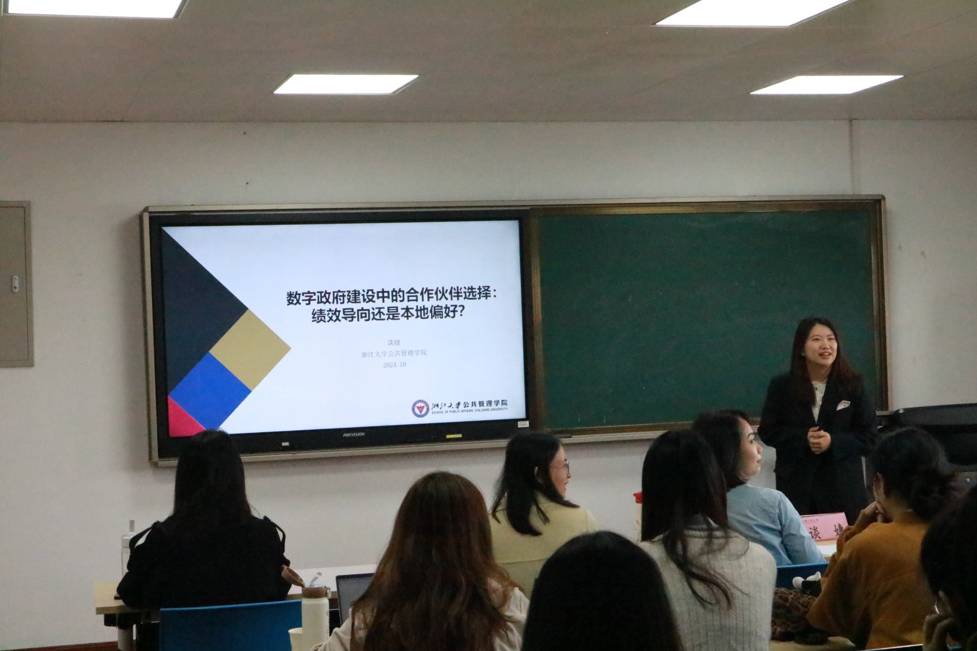 为拓展师生研究视野,10月28日上午10:00在逸夫楼8020会议室,浙江大学特聘副研究员,现任浙江大学民生保障与社会治理研究中心副秘书长、浙江大学社会治理研究院研究员谈婕应邀主讲,为我院师生做主题为《数字政府建设中的合作伙伴选择:绩效导向还是本地偏好?》的讲座,本次讲座由437必赢会员中心熊敏老师主持。讲座吸引了全院众多师生的广泛参与,学术氛围浓厚。