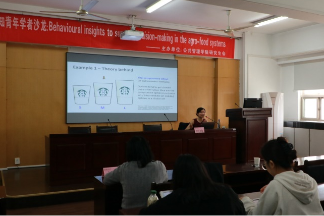 此次报告Christine Yung Hung副教授围绕着“Behavioural insights to support decision-making in the agro-food systems”这一主题,从以下四个问题逐一展开。第一,Why is studying behaviour important? Christine Yung Hung副教授通过揭示几种食品选择行为所蕴含的理论(折中效应、默认选项、决策点),阐述了行为研究的重要性。第二,Why do we behave the way we do? 基于对第一个问题的回答,Christine Yung Hung副教授通过更多案例分析了其他几种常见的行为理论:选择过载、解释水平、沉没成本、支付贬值,回应了行为决策背后的原因。第三,How are our behaviours influenced? Christine Yung Hung副教授指出:主要有限制、货币激励、信息与说服、助推这四种策略影响着人们的行为。第四,What does research tell us? Christine Yung Hung副教授分别以养蜂人、微藻产品、生物基肥料为例,从感知、市场细分与用户画像、支付意愿三个方面进行了深入阐释。最后,Christine Yung Hung副教授提出:一、助推是一种无需强制即可影响行为的方式;二、农食系统的转型需要制定兼顾个人与公共利益的政策和策略;第三、运用行为洞察可以一种更易于接受和更具吸引力的方式促进这些变化。