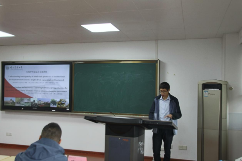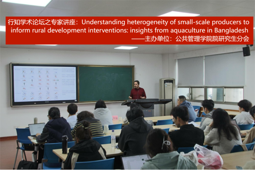 在首场报告中,Alexandros Gasparatos 教授以“Understanding heterogeneity of small-scale producers to inform rural development interventions: insights from aquaculture in Bangladesh”为题,对孟加拉国鲤鱼水产养殖系统展开深度剖析。他通过系统的研究设计,明确了刻画该国鲤鱼养殖系统类型、分布及差异化因素的核心目标,采用分层与随机抽样结合的方式,在孟加拉国54个分区完成4540份精细问卷调研,数据回溯至2020年。借助主成分分析、层次聚类法及方差分析等方法,识别出四类在商业化程度、劳动力类型、主导品种、集约化程度上差异显著的鲤鱼养殖系统,为精准制定农村发展干预措施提供了扎实的数据支撑。