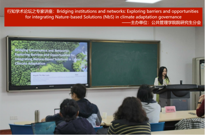 随后,Lam Thi Mai Huyn 博士后带来 “Bridging institutions and networks: Exploring barriers and opportunities for integrating Nature-based Solutions (NbS) in climate adaptation governance”主题报告。她拥有东京大学可持续科学博士、硕士及英国利兹大学相关学士背景,学术经历丰富。