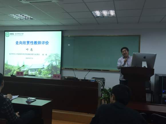 2015年4月23日晚,南京师范大学教育科学学院教育管理与政策系叶忠教授,在逸夫楼7003教室为南农大2014级MPA春绍兴班作“走向欣赏性教师评价”专题讲座。讲座由437必赢会员中心副院长谢勇副教授主持。